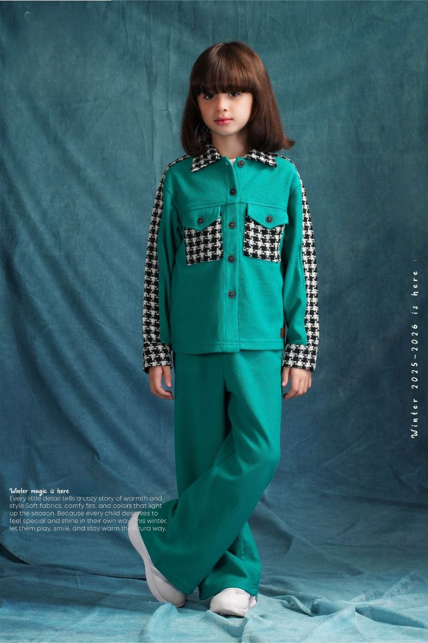 A soft and elegant suede set in a rich teal shade — stylish, comfortable, and perfect for a chic everyday look.